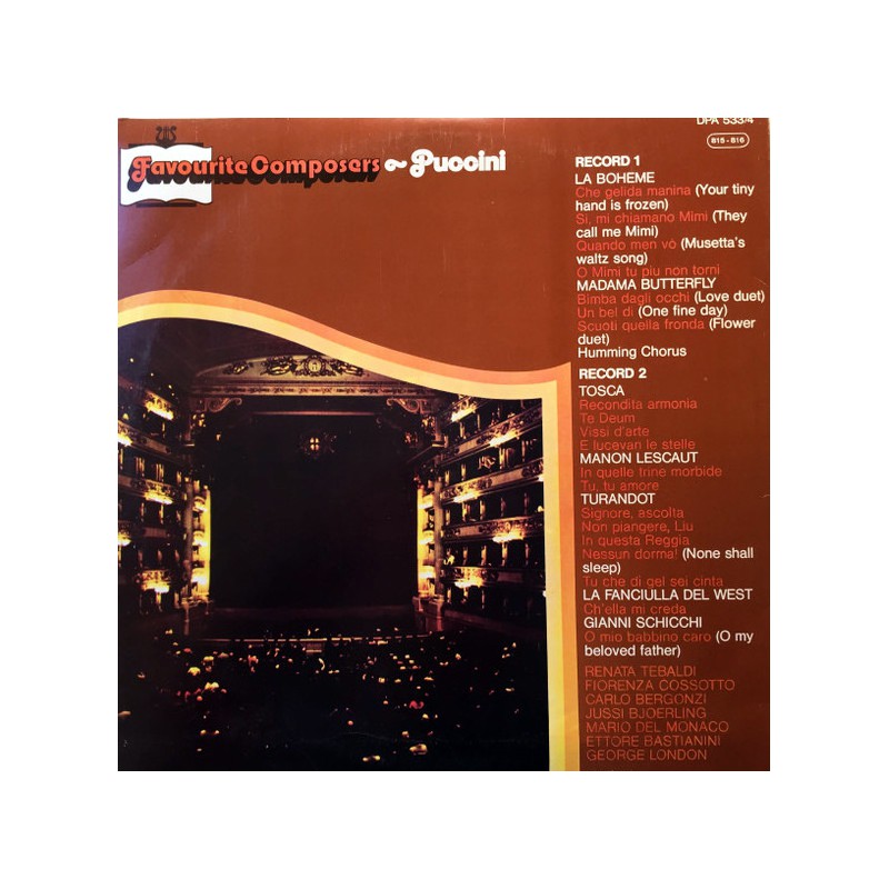 PUCCINI FAVOURITE COMPOSERS  KLASİK DOUBLE LP. Daha büyük görüntüle