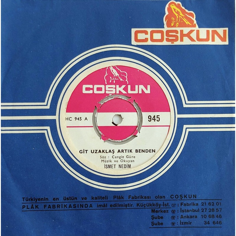 COŞKUN Plak 1970 yılı basımı, 945 ~ ÇOK TEMİZ DURUMDA
